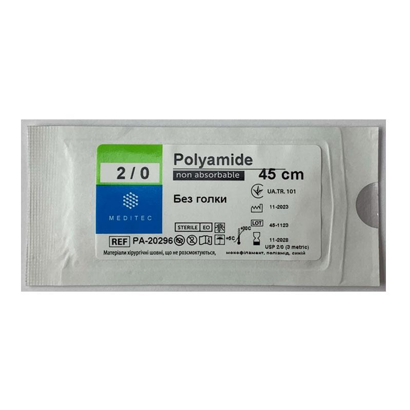 Матеріал шовний хірургічний, що не розсмоктується поліамід, USP 2/0, монофіламентний, синій, довжиною 45 см, без голки