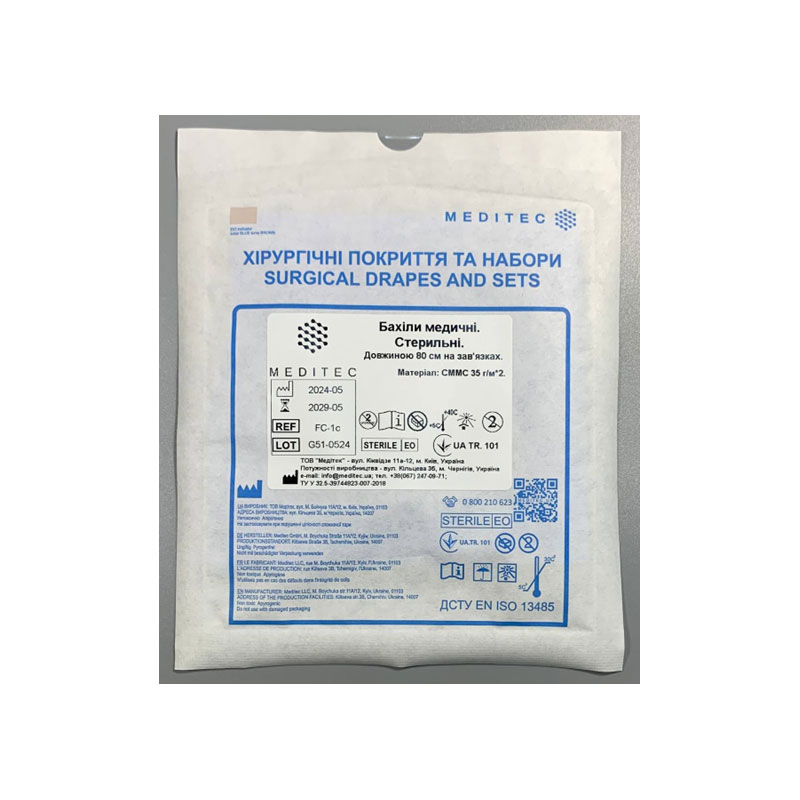 Бахіли медичні. Стерильні. Довжиною 80 см на зав`язках, матеріал СММС 35 г/м*2